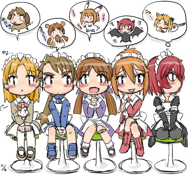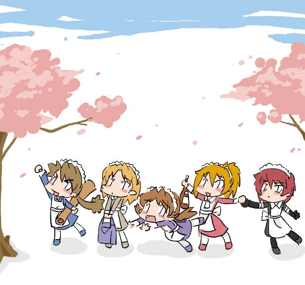 The Nijiura Maids are net characters created on japanese imageboard Futaba Channel's Nijiura boards. The first maid, Medoi-san, was created in 2004. They were created out of one anon's thought of having a cute maid. Each maids' name is a pun, reflecting their personality. Because the maids originated on an anonymous board, there is no 'official' content, and their creators are unknown. It is difficult to find information about some maids.